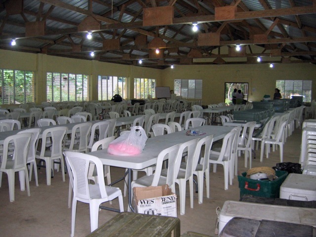 Prior to dinner, Teo comes to the front, and along side doctors Bourque and Tesoro, recaps the statistics. 38 general patients, 15 parasite treatments, 42 consults, 4 major surgeries. Not bad for the first day. Only four more to go. I’m not sure if that’s a good thing or a bad thing. Everyone is exchanging stories of the day and I find myself once again retreating into my own world. A pre-dinner drink would be perfect right now, but this is a dry mission and so I’m on my own. As dinner is served, a delicious combination of rice, spiced chicken, and fruit, I find myself looking for and ultimately sitting with Alley and whoever is with her. Dinner ends, and while some people head off to seek refuge in their netted beds, others break off into smaller groups. Although I crave for the comfort of my bunk, I force myself to join a few people at one of the back tables. Ed and his step daughter Shannon, both doctors, are amongst the people I sit with. They’re inviting and warm, and the conversation is comfortable enough.